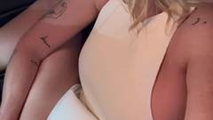 Ele a vê se masturbando com um brinquedo em seu carro e lhe faz um boquete.
