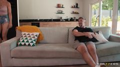 Paisley Porter, em um top minúsculo, provoca Keiran Lee. Sua bunda em um shortinho de bunda provoca um footjob e um delicioso cunnilingus.