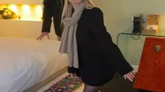 Margot em meias-calças pretas gozando do sexo com seu calvo