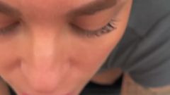 Loira faz seu homem gozar em sua boca após sexo oral