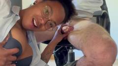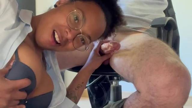 Prisca é a negra ninfomaníaca que se divertirá muito neste porno em que se mete debaixo da mesa para mamar o pau de um desconhecido.