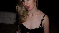 A loira se entretém chupando um brinquedo sexual em forma de pica, mas o que mais deseja é ter uma pija de verdade metida no cu, jorrando muito sêmen.