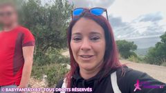 Ela é uma francesa que adora passear pela montanha para ver paisagens, mas ficou excitada e agora quer chupar o pênis do namorado na entrada de uma caverna.