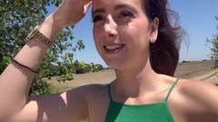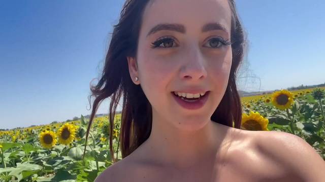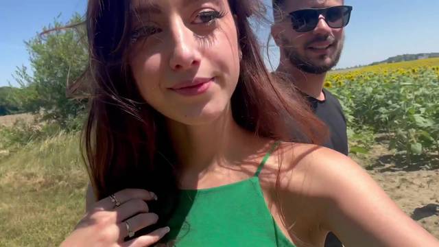 A jovem nos deixa ver como ela se diverte nos campos de girassóis na França, chupando o pau do seu cara, fazendo uma punheta russa nele e vendo-o gozar.