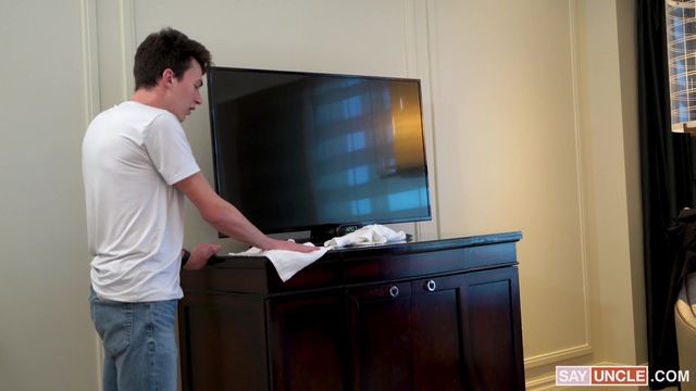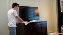Ao procurar algo embaixo da cama, esse jovem fica preso. Então, seu meio-irmão se aproveita e começa a chupar sua bunda e depois o fode.