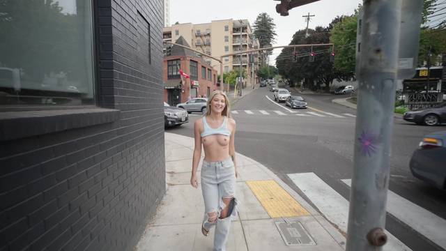 Esses desafios que chegam pelas redes fizeram com que Kaylee aceitasse fazer um que consiste em sair pelas ruas mostrando seus peitos. Mas ela se diverte mostrando-os!