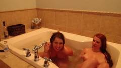 Essas duas lindas ruivas são muito legais e vão fazer um vídeo na banheira hoje. Elas se excitam olhando para os peitos uma da outra e começam a chupar a buceta uma da outra no final.