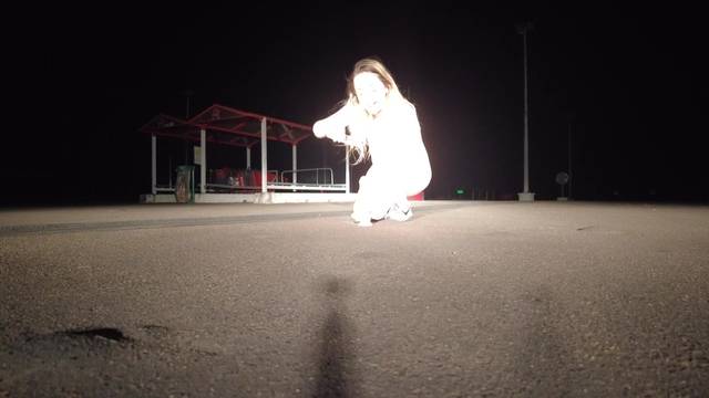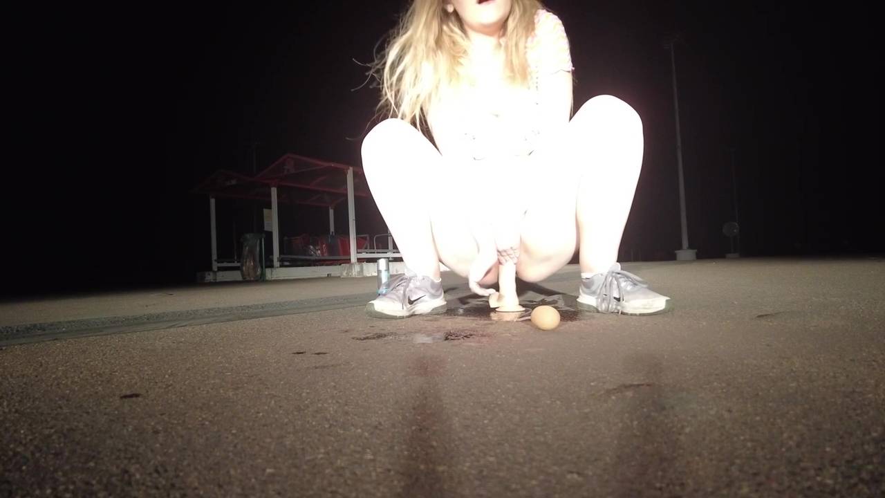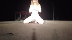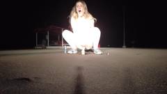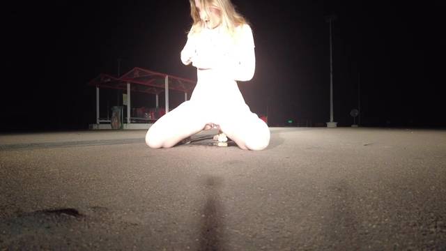 Para lhe dar mais prazer, ela decide se despir e se masturbar em um estacionamento público, com medo de que alguém possa vê-la.