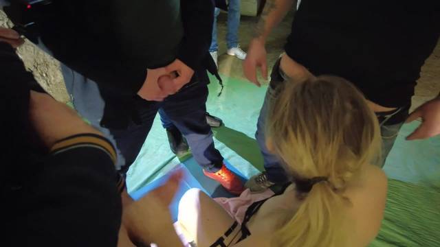Ela sabe o que provoca em todos esses caras que vieram hoje para um gangbang no qual gozam na cara dela depois de receberem a sua boa mamada de pau.