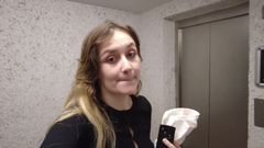 Esta loira é tão travessa, que hoje ela foi ao estacionamento do seu prédio para se masturbar com um brinquedo sexual com o risco de alguém a surpreender
