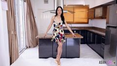 Ela se chama Ticha e é uma transexual asiática magra, que adora mostrar o seu corpo e nos exibir a sua pila ereta à medida que tira a roupa.