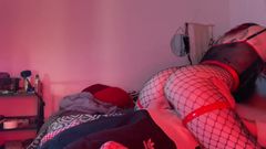 Aqui você verá esta garota se colocando de quatro patas e com meias-calças de rede para desfrutar ao máximo fodendo. Tudo sob uma luz vermelha agradável.