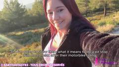 Essa mina é louca por motos e vai num evento de motoqueiros, onde percebem que ela é a única garota ali e resolvem botar ela pra mamar as picas deles todas.