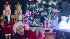 A bela e jovem morena que vemos se masturbando sob a árvore de Natal está tão excitada que coloca um brinquedo sexual entre as pernas enquanto sorri.
