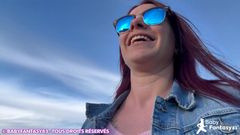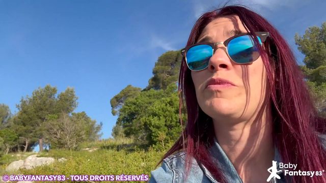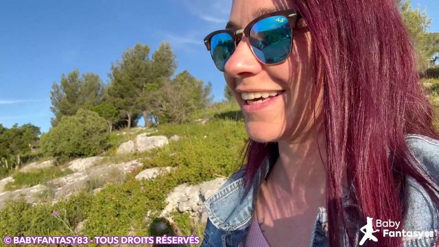 A ruiva foi dar um passeio à montanha, mas o sol aqueceu o corpo dela e por isso ela teve vontade de mamar o pênis ao companheiro dela.