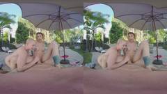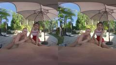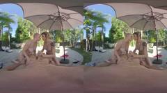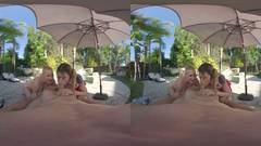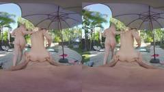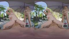 As duas compartilham o pau do mesmo homem em um pornô VR, mas a travesti se diverte mais, já que não é todo dia que ela tem a sorte de ser sodomizada assim.