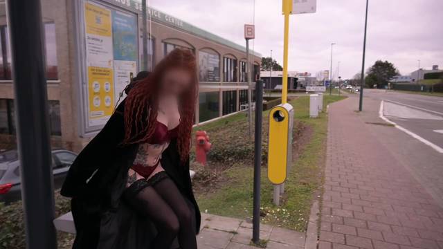Ela está sempre preparada com roupas que pode tirar facilmente em qualquer rua. Nympha é a ruiva que vai nos deixar com tesão hoje, exibindo seu corpo ao ar livre.