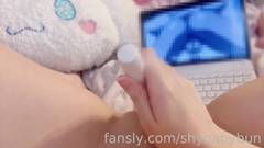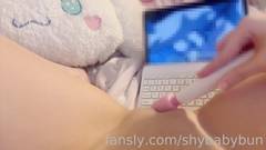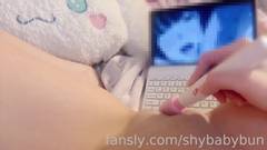 Ela assiste a pornografia hentai enquanto dedilha sua buceta em POV