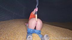 Como é costume, esta loira procura algo para penetrar o cu, e desta vez não tem um bom brinquedo sexual, então enfia uma pá de jardineiro.
