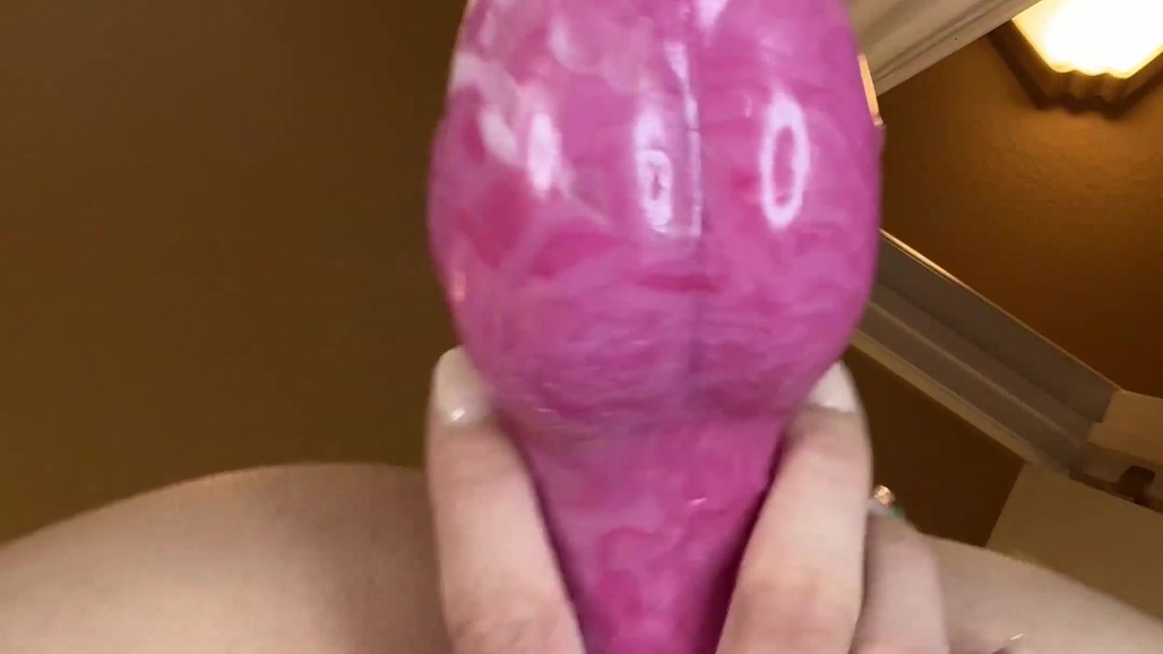 No princípio, parece que esse dildo é tão grande que não caberá na buceta dela enquanto ela se masturba, mas estamos enganados, pois ela o enfia facilmente.