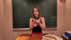 Todos gostaríamos de ter uma professora assim, tão jovem e safada, nos dando uma aula de sexualidade, e usando seu brinquedo sexual para nos mostrar como ela faz.