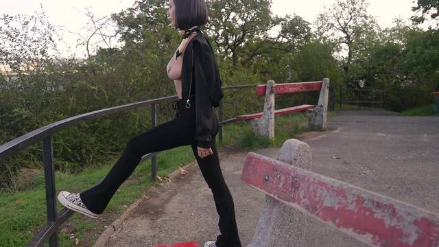 Eve tem muito orgulho de seu par de peitos grandes e os exibe alegremente em todos os cantos da cidade, ao ar livre ou nas lojas.
