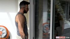 Este jovem pensou que estava sozinho, então começa a se masturbar, mas o homem que lava janelas viu o que ele estava fazendo! Então decidiu entrar e chupar