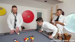 Dois gays fodendo muito gostoso com o parceiro sobre a mesa de bilhar