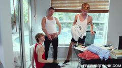 Esses jovens relaxam, até que chega o padrinho de um deles com o pau de fora da calça para que o chupem e lhe façam uma boa punheta.