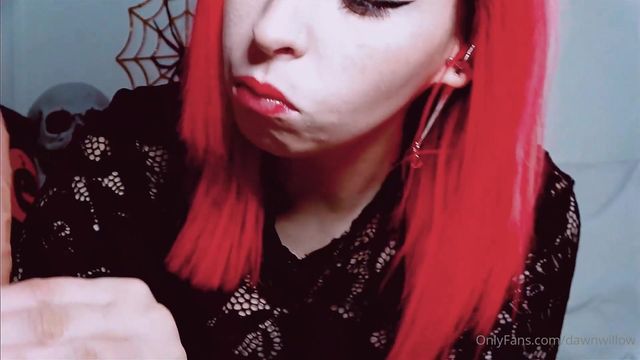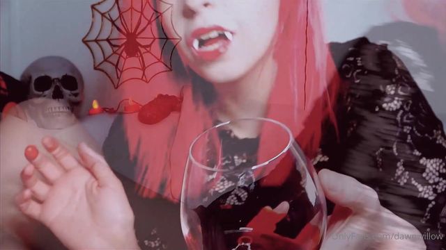 Essa garota é linda, mas está fantasiada para o Halloween, com dentes de Drácula, e começa a se masturbar com um vibrador só para nos entreter.