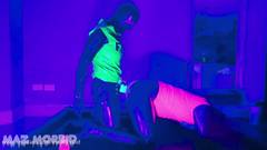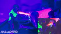 Com certeza você nunca viu um pornô como esse, em que um casal transa no estilo BDSM sob uma luz ultravioleta. Ele enfia a mão inteira na bunda dela!