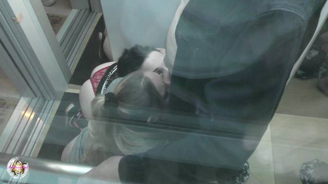 Os dois podem chupar o mesmo pênis em um elevador de vidro