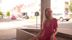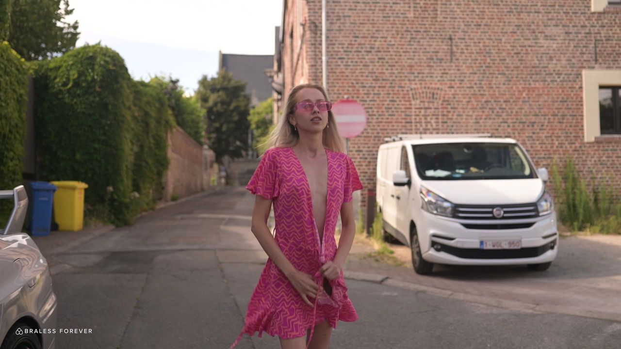 Bernie está feliz com seu corpo, apesar dos peitos pequenos e da buceta apertada, ela os mostra livremente enquanto caminha ao sol.