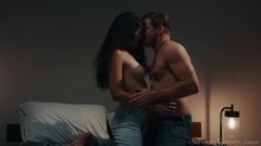 Após uma quente e deliciosa cena de beijos apaixonados, Nathan Bronson começa a despir Harley Haze, depois se deita para comer sua buceta suculenta