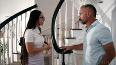 Charles Dera surpreende sua enteada Madison Wilde praticando com um dildo. Para guiá-la, ele tira seu pau, ordenando que ela se ajoelhe e chupe sua pica dura.