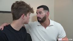 Este twink está triste porque seu padrastro vai embora, mas antes de ele ir, o padrastro chupa o pau do seu enteado uma última vez!