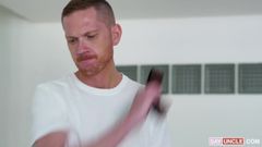Seu padrasto descobre que ele foi ao concerto que estava proibido, e para castigá-lo o acorda de manhã para que ele chupe o pau dele.