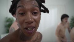 Bonnie Blue explode tudo em um gangbang de loucura dominado por vários homens que a destroem à vontade, terminando coberta de sêmen após uma orgia.