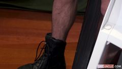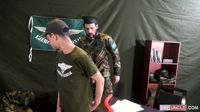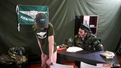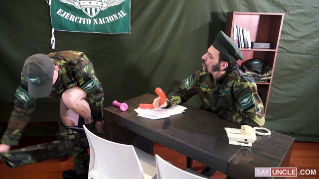 Este sargento militar fez com que este jovem cadete militar tirasse as calças, para poder meter-lhe brinquedos sexuais no seu apertado buraco do cu!