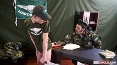 Um Sargento militar pede a este cadete novato que lhe faça uma punheta