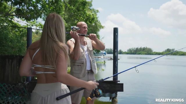 Lola Cheeks toma aulas de pesca com Jmac, exibindo seus seios para agradá-lo. Ele lambe sua bunda no pontão, depois ela chupa e recebe seu pau duro.