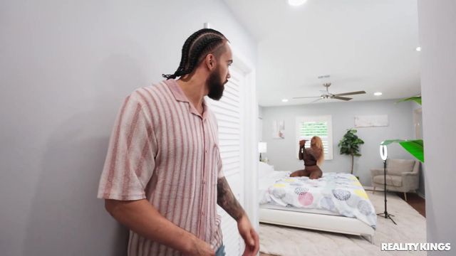 Stephanie Raee exibe seus grandes peitos para James Angel e seu amigo. Ela se masturba com um brinquedo na frente da câmera e depois James entra em cena.