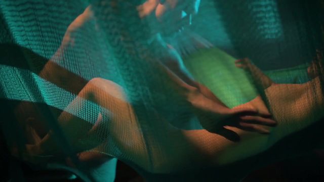 Channelle deita-se na rede, separa as coxas, comem-lhe a cona em suspensão e depois enculam-na com estocadas violentas, neste Rede Sutra ardente.