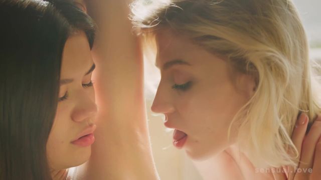 Beijam-se lentamente, acariciam-se as tetas e as conas lisas, lambem-se o clitóris com languidez até tremerem de orgasmos! Que paixão lésbica!