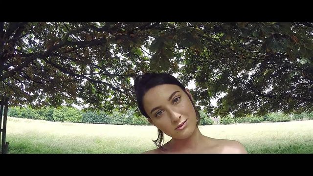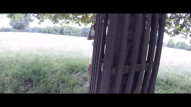 Durante um passeio, em um campo, ela se esconde debaixo de uma árvore para mostrar seu corpo e suas grandes maçãs que caem tão pesadas e perfeitas!