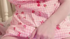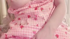 A câmera dela está ligada e ela começa a nos mostrar seus enormes mamilos, enquanto se masturba sensualmente sentada sobre um dildo que entra bem nela.