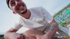 A sexy garota de ioga se deixa untar os peitos e a bunda antes de Yeri tirar sua grande pica para que Alexis Doll lhe faça uma garganta profunda.