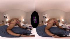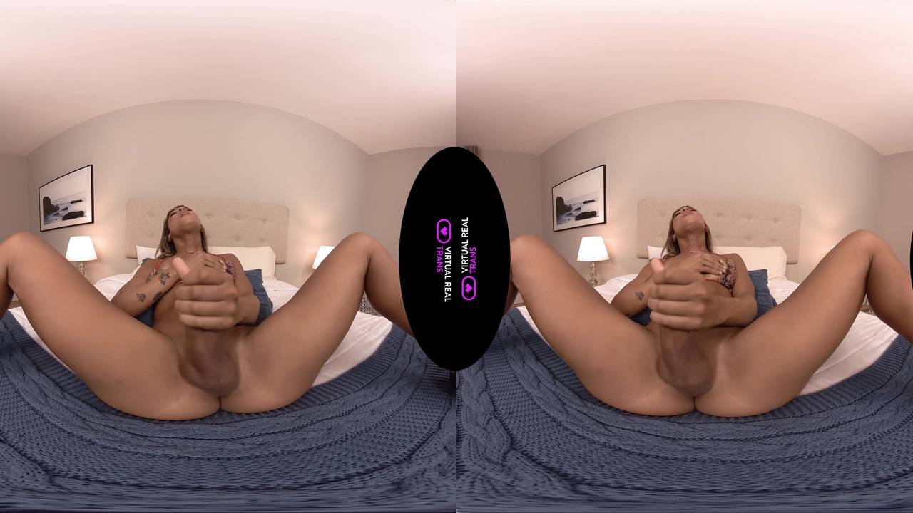 Depois da piscina, a transe enfiou seu sextoy em seu buraco apertado pulsante em VR, depois se masturba o pau até o jorro de sêmen que pinga por toda parte.