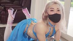 A bela asiática tranny desfruta de um dildo enfiado em seu cu belo
