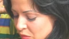 Esta morena sexy e seu parceiro de longos cabelos vão desfrutar do sexo no ar fresco. Eles têm um monte de diversão ao ar livre...